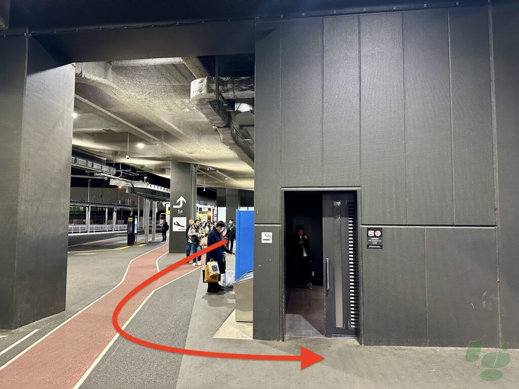 チェックインカウンターの入口近くにいる場合は、いちど建物の外に出て、1F到着ロビーの喫煙所に行ったほうが近い場合もありますが、上り下りするため、迷いやすいので要注意です。
